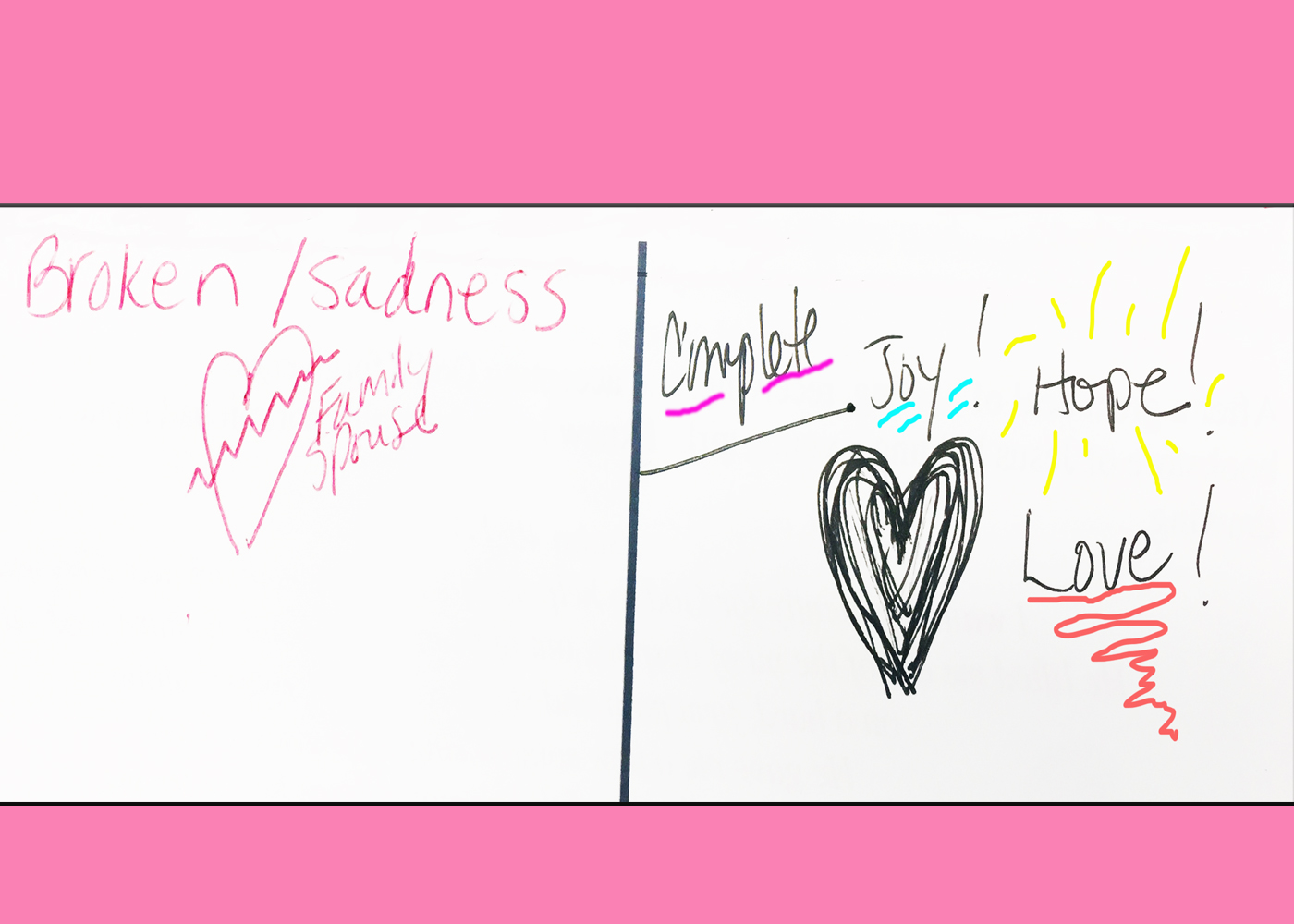 I have the privilege of seeing God at work during the program and even after.  Here are some amazing visual testimonies from the attendees through their before and after drawings, poetry or letters.