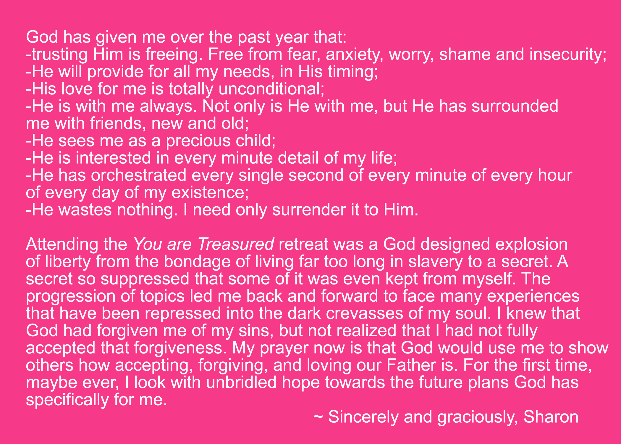 “I had brokenness in many areas of my life which made me very sad. Now I am complete!” – Teri