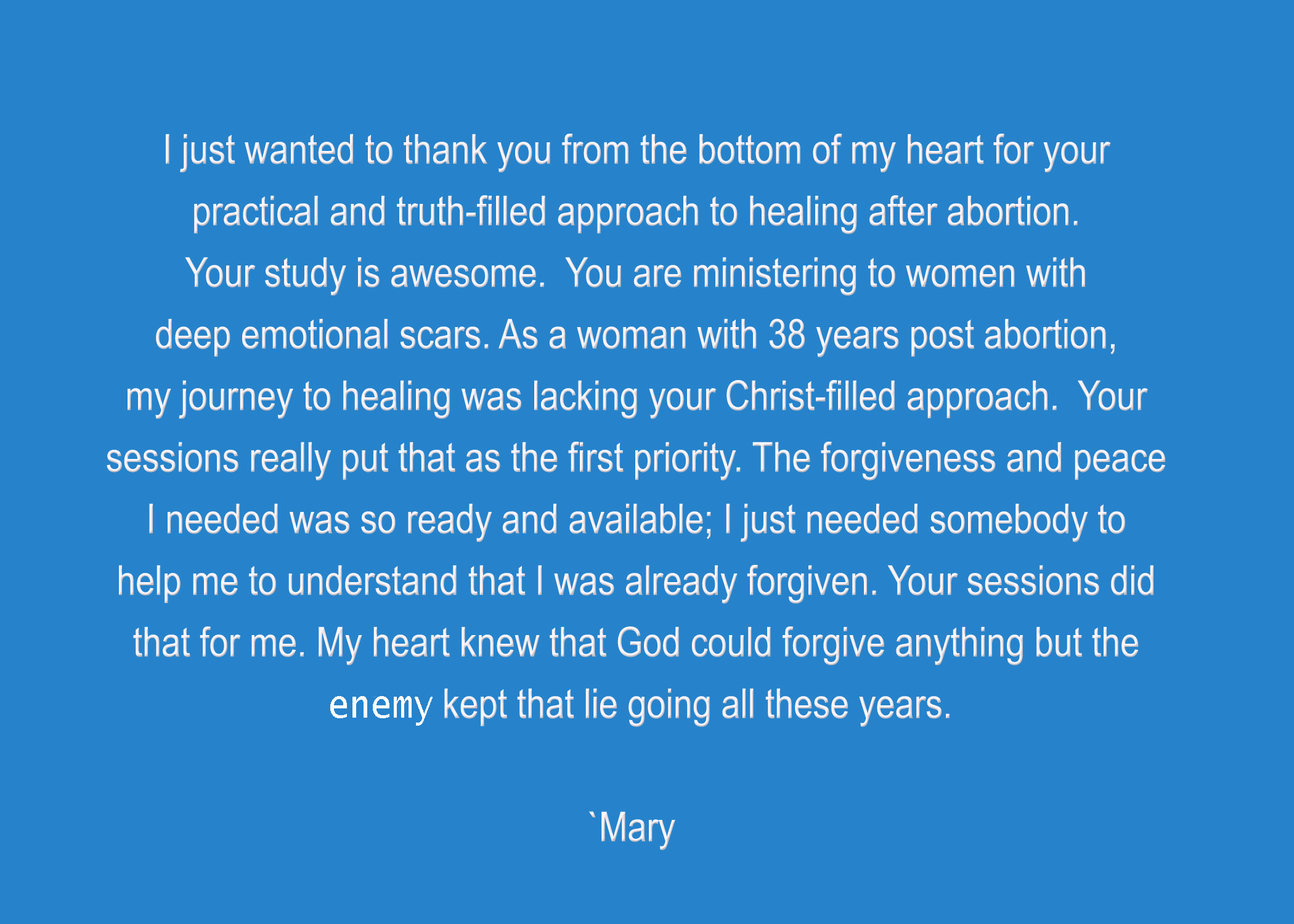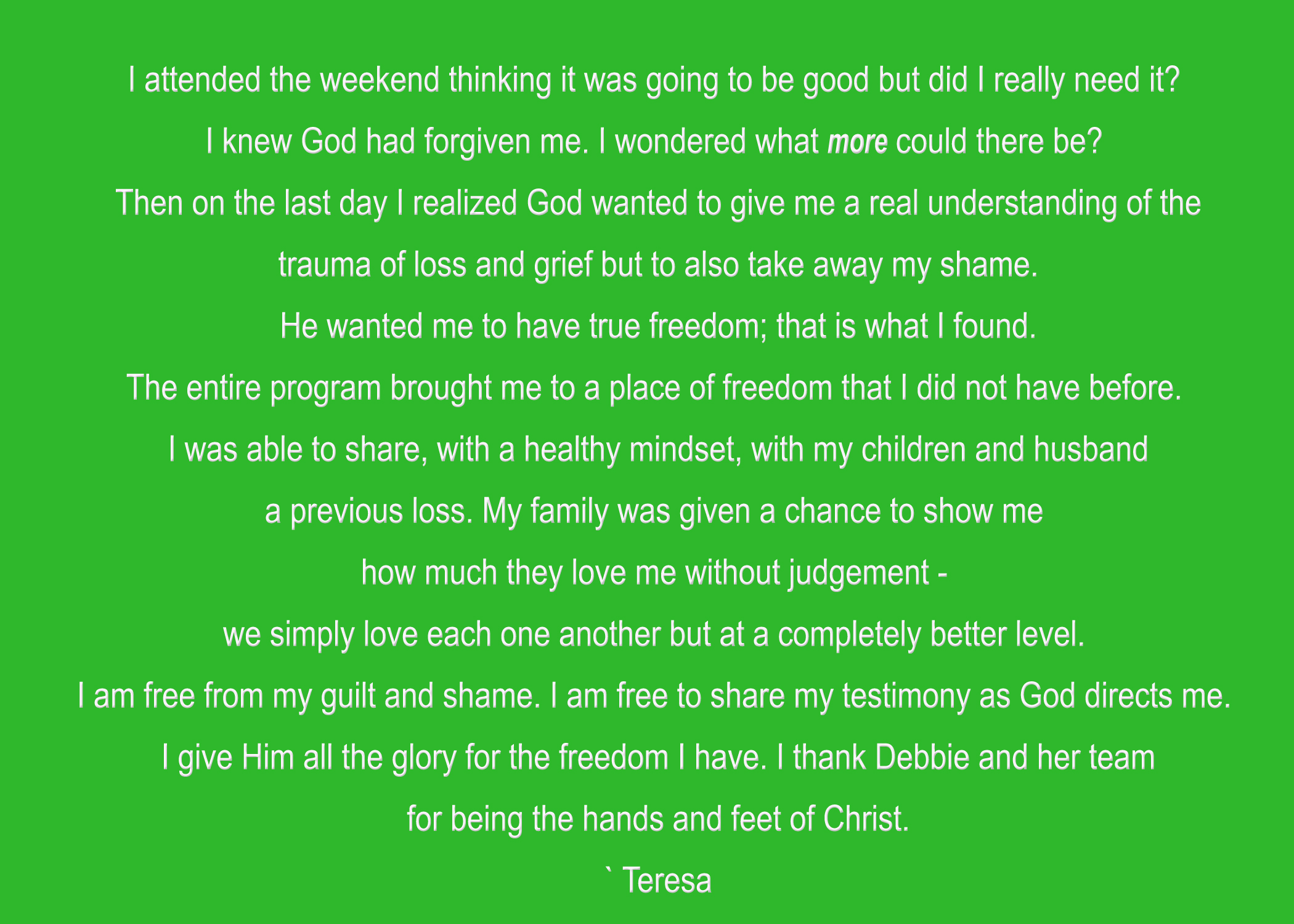“My heart was totally broken over the loss of my children and never thought I could heal. God not only healed me, but now my heart is full of joy.”